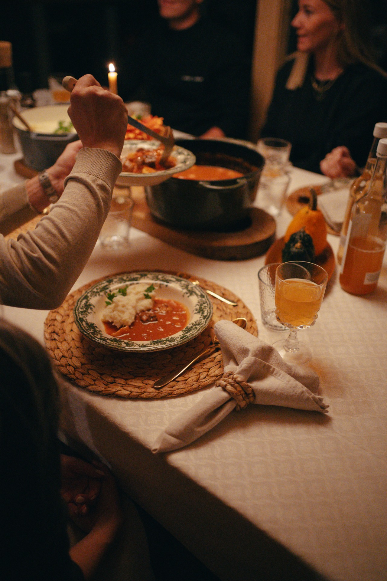 Et måltid med levende lys, varme gryter og gode samtaler - omgitt av eng, skog og stillhet på Svindal gård.